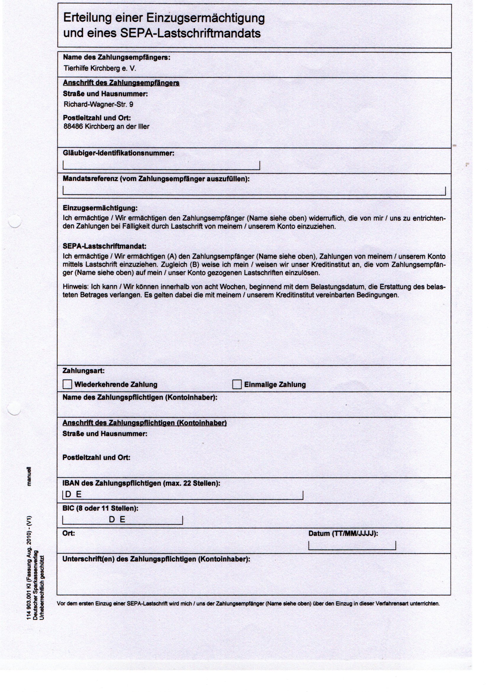 IBAN: DE78 6545 0070 0007 3103 77; BIC: SBCRDE66XXX; Kreissparkasse Biberach